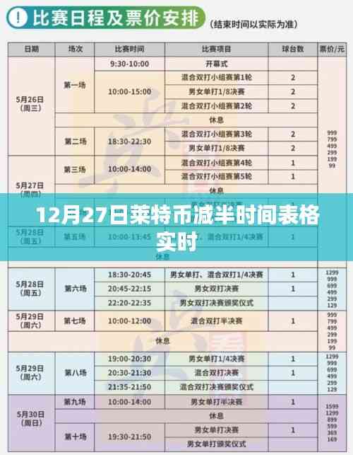 随着加密货币领域的日益发展,各种数字货币纷纷崭露头角,莱特币(Litecoin)作为一种重要的数字货币,其减半事件备受关注,本文将围绕“12月27日莱特币减半时间表格实时”这一主题,为读者带来最新的相关信息和解读。