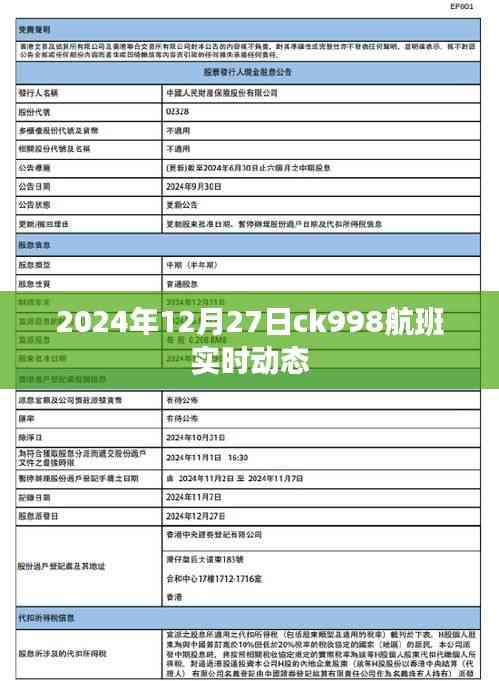 随着全球航空运输业的快速发展,人们对航班动态信息的需求日益增长,本文将重点关注2024年12月27日ck998航班的实时动态,为关注此航班的旅客提供详细、准确的信息。