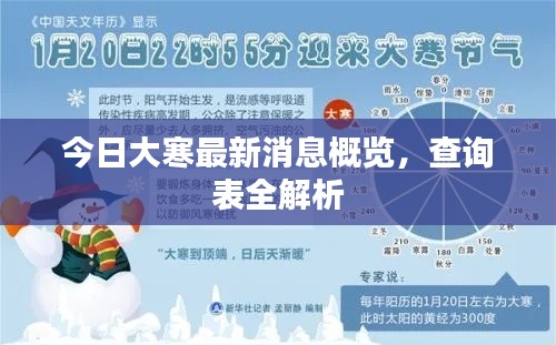 随着气象科技的进步和互联网的普及,获取最新的气象信息变得越来越便捷,今日大寒,我们为您整理了一份最新消息查询表,以便您了解这一特殊时节的天气状况及相关信息。