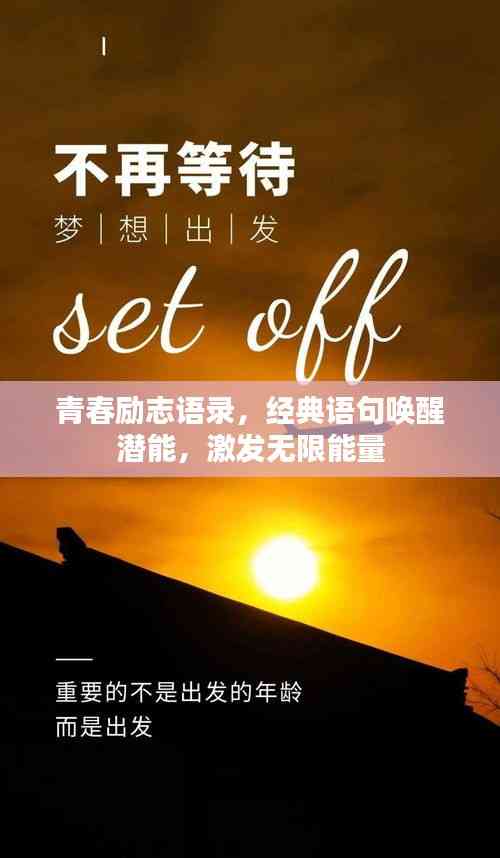 青春是一段充满热血与激情的时光,它如同初升的太阳,照亮我们前行的道路,在这段美好的岁月里,我们怀揣梦想,勇往直前,励志语录中的经典语句,犹如智慧的灯塔,指引我们战胜困难,迎接挑战,以下是一些青春励志语录中的经典语句,希望能激励我们在青春的道路上砥砺前行。