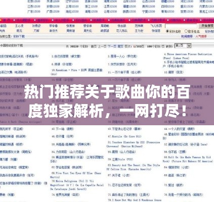 在当今数字化时代,音乐已经成为人们生活中不可或缺的一部分,随着互联网的普及,获取音乐的方式也变得多种多样。“你歌曲百度一下”成为了很多人寻找音乐的一种常见方式,我们就来谈谈关于“你歌曲百度一下”的一些相关内容。