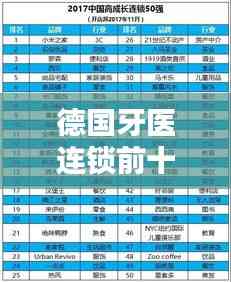 在德国的牙科医疗领域,有许多知名的牙医连锁机构以其卓越的专业技术、优质的服务和良好的信誉赢得了广大患者的信赖,以下是德国牙医连锁排名前十名,这些机构在牙科领域具有极高的声誉和影响力。