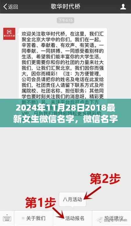 随着时代的变迁和科技的飞速发展,微信作为当下最受欢迎的社交平台之一,已经成为人们日常生活中不可或缺的一部分,微信名字作为用户在社交平台上的身份标识,不仅体现了个人风格,也反映了时代特色和文化潮流,本文将聚焦于“2024年11月28日女生微信名字”这一特定话题,探讨女生在选择微信名字时的多重考量因素,以及背后所蕴含的文化心理现象。