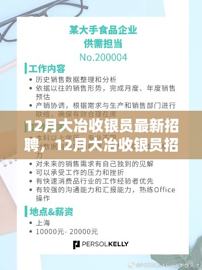 随着经济的不断发展,收银员这一职业也在逐渐转型升级,大冶地区作为商业活动的重要区域之一,其收银员招聘动态引起了广泛关注,本文将围绕“12月大冶收银员最新招聘”这一主题,探讨收银员行业的现状、正反双方观点以及个人的立场和理由。